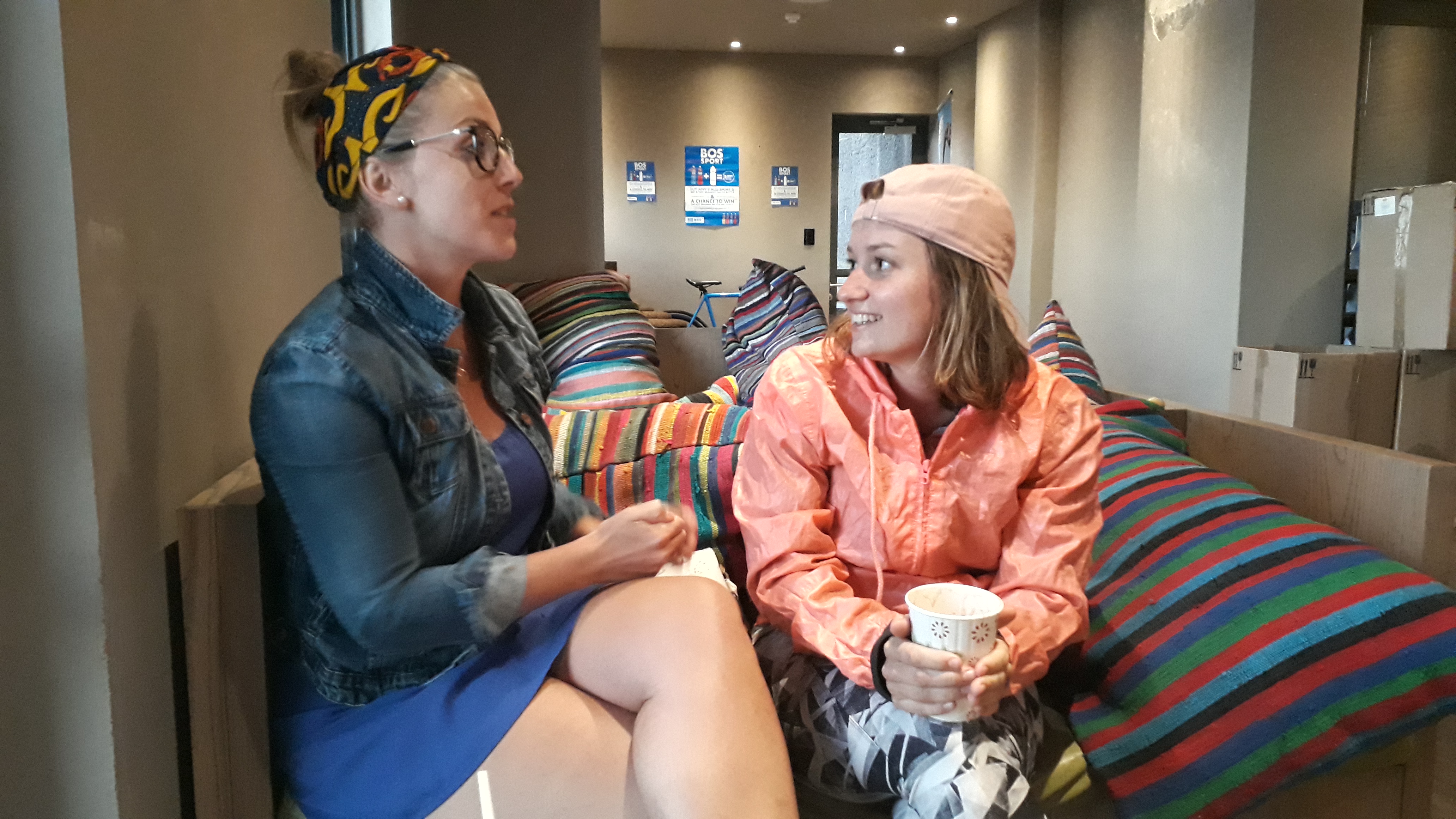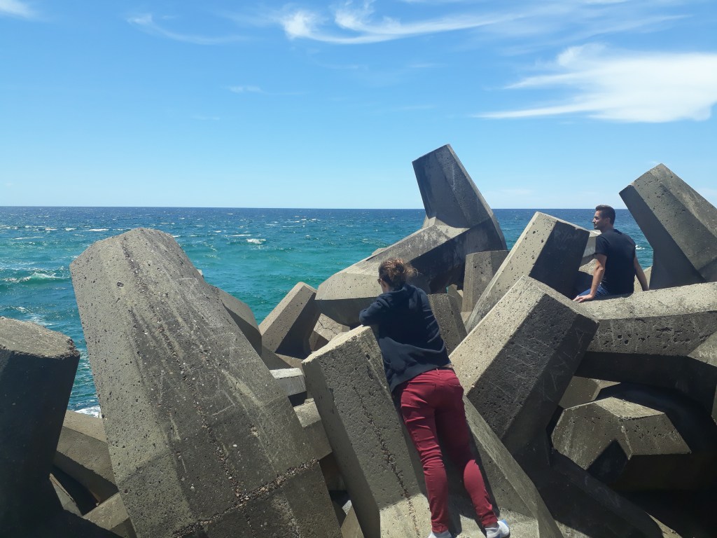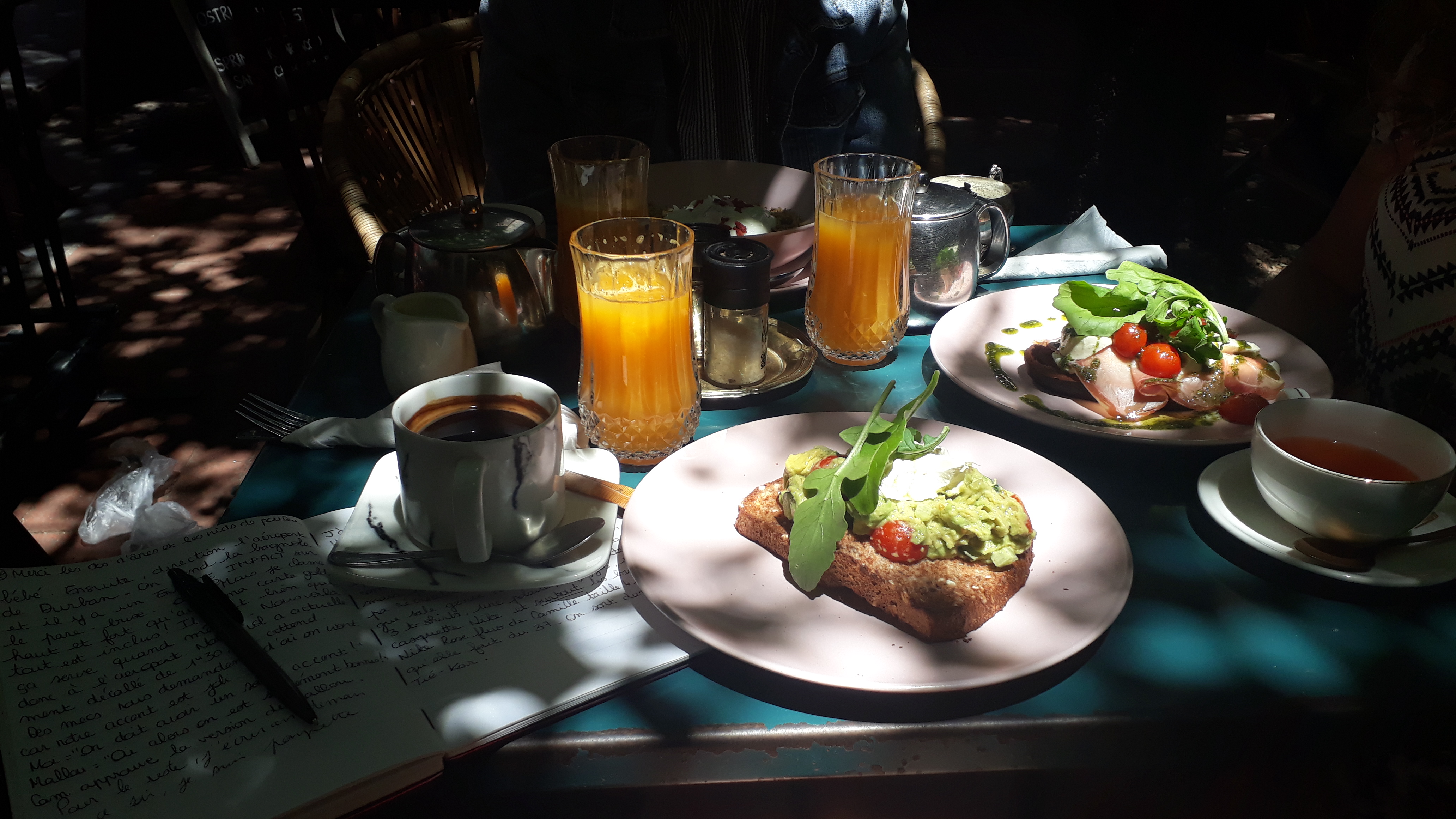 Bien que mon auberge de jeunesse (M Montréal) soit situé dans le quartier LGBTQ + de la ville, il semblerait que je me fasse tout de même draguer. Hier, Kody, un titanesque Sud-africain vivant à Boston a pris mon Insta et ce matin, je reçois un message me demandant si j’avais mieux dormi (cf la ronfleuse) et oui ! Car elle est partie ! Kody et moi, on s’est rencontrés sur le palier du 5e étage qui dessert les deux terrasses de l’auberge et où, sur chacune, se trouve un jacuzzi. J’étais plantée là, épuisée, hésitant comme un lapin dans la lueur des phares, s’il fallait que j’aille à droite ou à gauche. Kody est passé devant moi et a tourné à droite en me demandant si je voulais aller sur la terrasse, j’ai dit oui et il m’a répondu « bah viens » et je l’ai suivi.