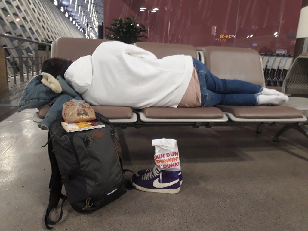 J’ai failli louper mon avion. J’étais sûre et certaine de décoller à 15h. Donc, j’avais prévu de partir vers 11h de chez Lucie. Heureusement que la veille, elle m’a redemandé l’heure exacte pour calculer mon temps de trajet. Sinon je pense que je ne serai pas là actuellement ! Car, j’ai découvert à ce moment-là, qu’en réalité, je partais à 13h. Et au bureau de tabac, tout à l’heure, j’ai oublié ma carte bancaire, c’est la vendeuse qui m’a prévenu. Ça commence très très bien. À 15h à Montréal, il sera 21h en France, j’irai à l’auberge de jeunesse, le seul hébergement que j’ai réservé pour l’instant, poser mes affaires et aller me balader en ville. Là, je vais faire une petite sieste pour récupérer un peu.