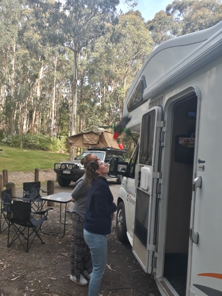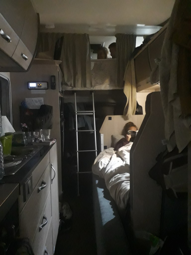 Le pont des États-Unis est un peu bruyant mais à part ça, on se croirait en pleine nature. Il y a une plage et en face, sur le Saint-Laurent, des toutes petites îles avec des maisons accessibles seulement en canots. C’est beau, c’est reposant. Le camping est au trois quart vide. On trouve principalement des vieux avec des camping-cars de compète, jamais vu ça, à côté John Michael (notre camping-car en Australie), c’est un bébé camping-car. Les vieux font tous du feu et s’invitent les uns chez les autres comme s’ils étaient là toute l’année. Il y a un monsieur qui joue de la guitare et parfois, en même temps, de l’harmonica. Il chante tellement bien que je croyais que ça venait de la radio. Moi aussi je vais essayer de faire du feu, tiens.