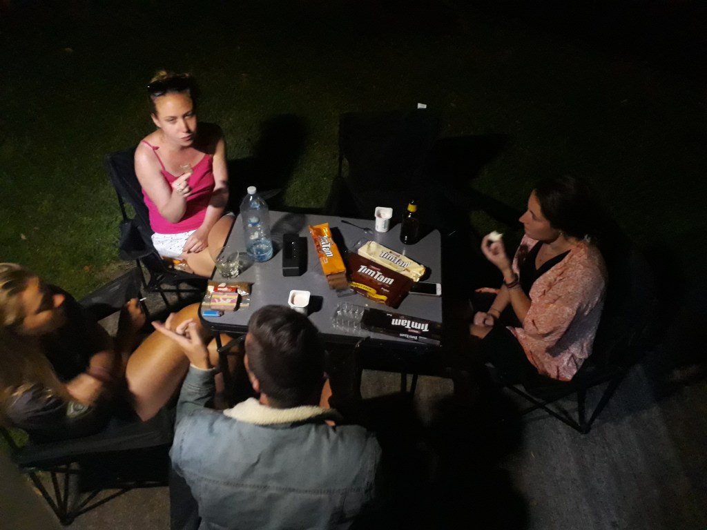 Par contre, j’ai pas hyper bien dormi. Je me suis réveillée, il faisait nuit noire. J’avais la flemme de regarder mon téléphone donc aucune idée de l’heure, ça se trouve j’avais dormi vingt minutes ou six heures, c’est pareil. Mon matelas était dégonflé, j’avais froid et le nez bouché. Il faut dire que je m’étais couché à moitié à poil et le duvet ouvert car j’avais trop chaud. J’ai regonflé le matelas, mis mon drap de soie en plus du duvet, je me suis mouchée (du détail, du détail!) et j’ai essayé de me rendormir mais je sentais mon matelas se dégonfler de nouveau. J’ai râlé et puis j’ai vu que la valve de dégonflage était ouverte. Bon voilà où était le problème. Par la suite, j’ai dormi jusqu’à 8h30, heure à laquelle le camion-aspirateur de caca est passé et m’a réveillé. Parlons d’ailleurs de ça, ce campement est, somme toute, assez luxueux : douche (eau froide ok, mais douches quand même), WC avec PQ, c’est important, eau courante, machine à laver et sèche-linge. Mais, étant donné que le campement est très étendu, des chiottes chimiques de chantier (ou de festoche selon votre âge) ont été installées à des endroits stratégiques pour les urgences nocturnes. Sauf que j’ai voulu tenter moi, hier soir, avant de m’endormir, et quand on pénètre dans ces toilettes, c’est même pas l’antichambre des Enfers, c’est pire que ça ! On se retrouve face à un magma de merde et de produits chimiques à l’odeur si infâme que j’ai immédiatement une petite envie de dégueuler. Et pourtant Dieu sait que je vois des choses pas jolies-jolies tous les jours au travail. À ce prix-là, pisser dans la nature est une merveilleuse expérience.